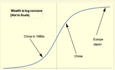 图2:财富的增长呈对数凹性 [非等比缩放]